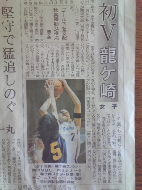 2010/11/28 Category : ミニバス ゴール下を支配 ども管理人です昨日はお疲れさまでした『ゴール下を支配秋葉躍動24得点』本日の茨城新聞昨日の選手権大会優勝の記事が掲載されましたしかも写真付きカッコいい [21回]PR