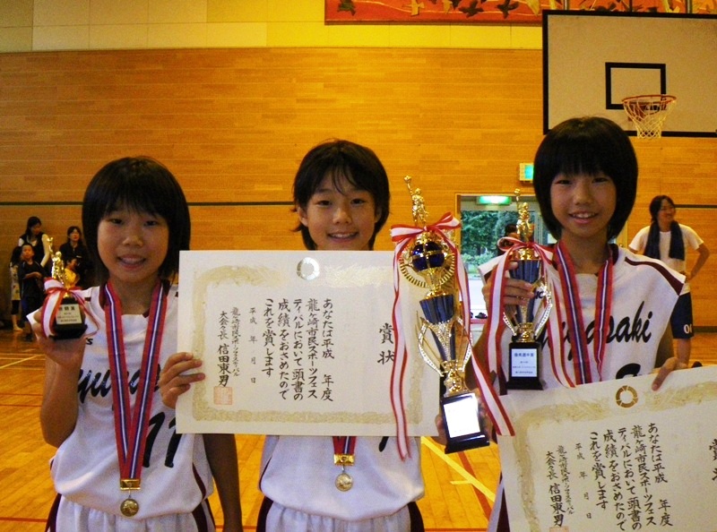 2010/10/21 Category : ミニバス 今更ですが… ホントに今更なんですが… 龍ヶ崎市スポーツフェスティバル4連覇おめでと 見事個人賞に輝いたのは 龍miniが誇るチビッ子トリオ その名は「ちんちくりん」 ちん133cm(自称)、ちく137cm(自称)、りん142cm(自称) この身長でも強豪相手に活躍しちゃうんだからたいしたもんだ 週末は県南A地区決勝大会 頑張っていきましょう [12回]