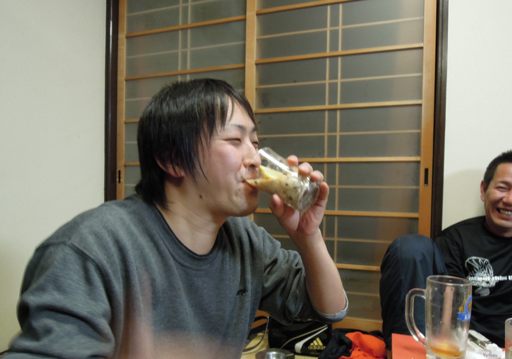 2011/12/15 Category : ブログ J:COMカップ 打上げ編 ばんちゃ 管理人です さてと 打上げ編行きますか というわけで 龍北さんご用達の 「ますや」さんへ集合 ひと通りご飯を食べて 差し入れのお菓子なんかいただきます ・・・ まぁ子供らはふざけますね ・・・ 色んな得体の知れないものが運ばれてきます ・・・ おじや風の何かです・・・ ドンチャン曰く味は 「ガツンと酸味がきて~」 「ふわっとソースが抜けていく・・・」 カルピスベースでソース風味 だそうです ヒラチャンの健康を考えた 特製ドリンクだそうです チャーハンと生ハムのジュース ※食べ物を粗末にしてはいけませんよ とまぁ こんな感じで 最後は記念撮影と恒例の一本締めで終了しました おやすみ [7回]PR